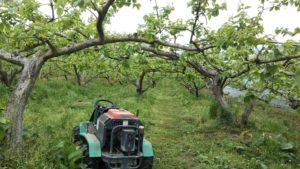 収穫まで、草刈りを3~4回行います。柿栽培にとっての重労働の一つです。