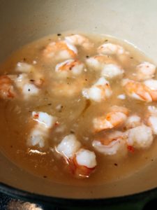 2.鍋に水、中華スープの素を入れ沸騰してきたらエビを入れる。
