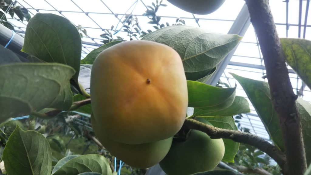 この時期はハウス柿の収穫。 朝の6時よりスタッフと収穫をしております。 一回の収穫量が大体500キロほどになります。 収穫終了が12時くらいになりますが、ハウス内の温度は40℃前後。スタッフはヘロヘロになりながら、収穫を …